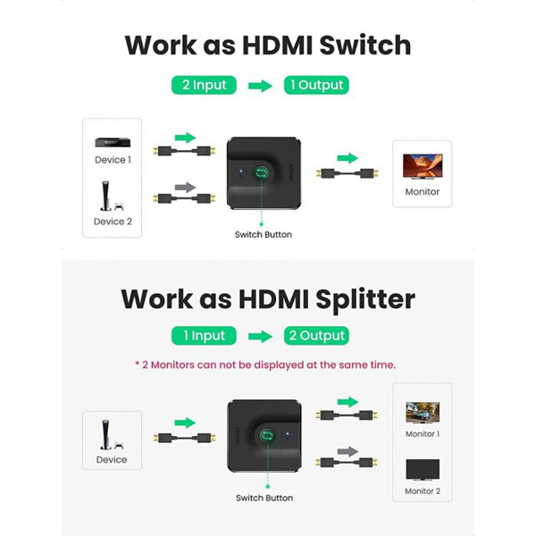 سوئیچ 1 به 2 HDMI یوگرین مدل 4K 50966