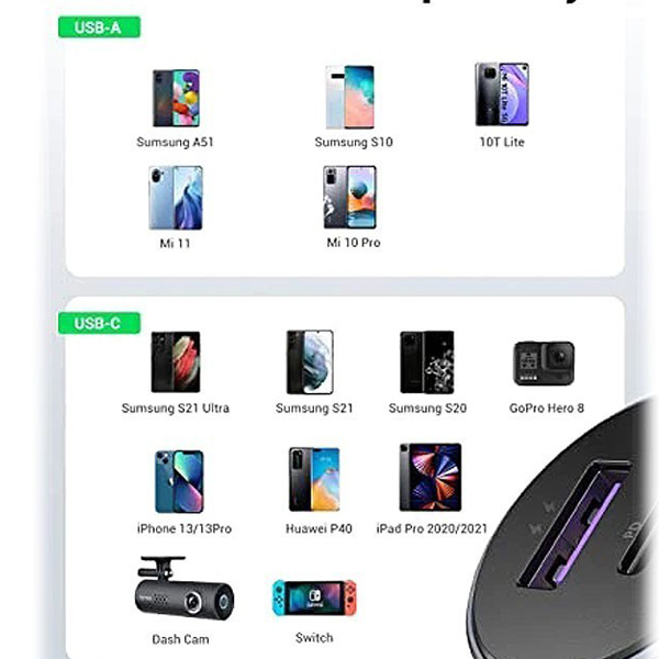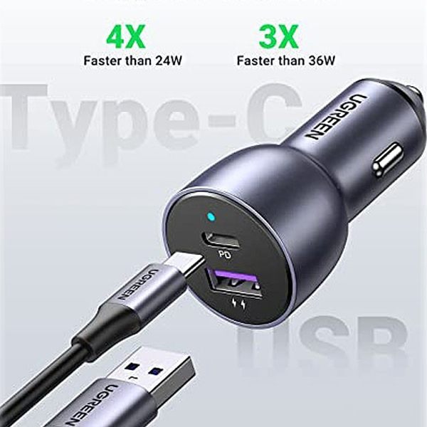 شارژر فندکی Ugreen مدل CD213-60980 دارای یک پورت USB باتوان خروجی 22.5 وات و یک پورت Type-C با توان خروجی 30 میباشد و در مجموع توان خروجی 52.5 وات را به شما ارائه میدهد. بدنه آلومینیومی این شارژر آن را منحصر به فرد کرده است. اگر اهل سفر با خودرو خود هستید و یا کار شما طوری است که زمان زیادی در خودرو می مانید نیاز است که موبایل شما به طور مداوم روشن باشد. برای اینکه بخواهید موبایلتان شارژ شود به یک شارژر فندکی احتیاج دارید. شارژر فندکی Ugreen یکی از با کیفیت ترین شارژر فندکی ها می باشد