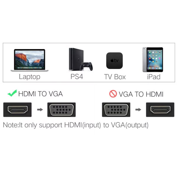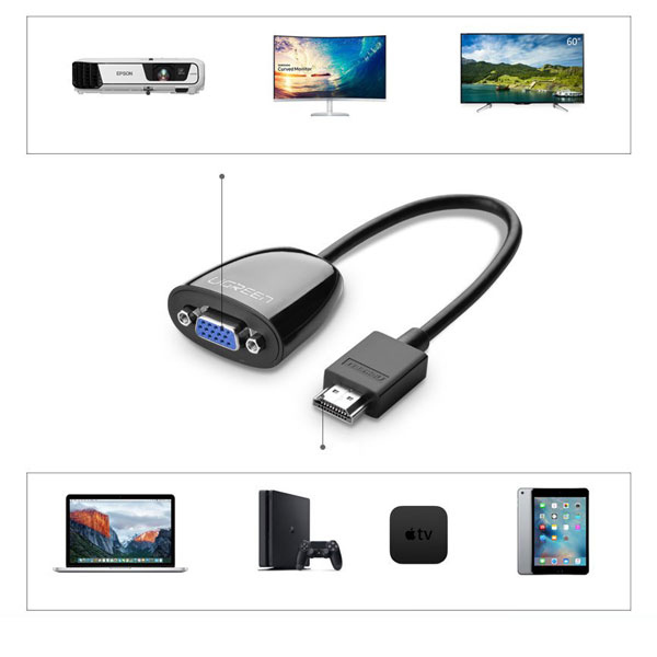 توسط مبدل HDMI to VGA برند یوگرین مدل MM105-40253 خواهید توانست خروجی دستگاههای دارای پورت HDMI را به دستگاه های دارای ورودی پورت VGA متصل کنید . توسط این مبدل خواهید توانست تمام دستگاه های مجهز به خروجی پورت HDMI مانند انواع نوت بوک ، کامپیوتر ، DVR و … را به انواع مانیتور و ویدئو پروژکتورهای با ورودی VGA وصل کنید.