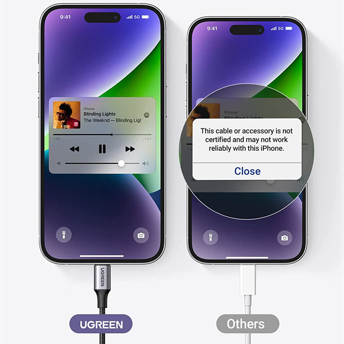 تبدیل Lightning به جک 3.5 میلی متر یوگرین مدل US315 دارای MFI Certified از اپل میباشد. این کابل به طول 1 متر بوده و از کیفیت ظاهری و پخش فوق العاده ای برخوردار است.
