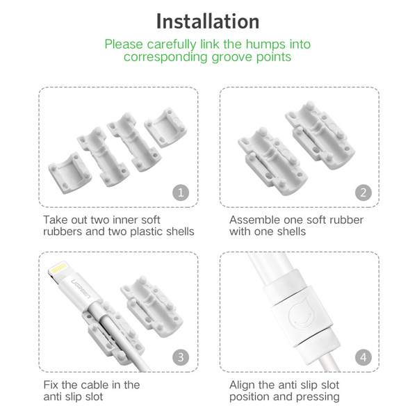 برند: Ugreen تعداد: 6 عدد در بسته بندی جنس: پلی وینیل کلرید (PVC یا PVC) نازل در برابر کشش و خم شدن محافظت می کند و طول عمر کابل را افزایش می دهد سازگاری گسترده با تمام کابل های اصلی اپل |