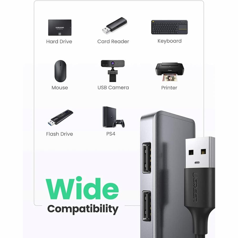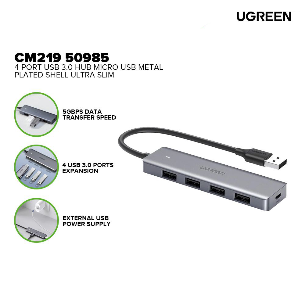 هاب CM219-50985 یوگرین دارای 4 ورودی USB 3.0 و یک ورودی USB-C میباشد که قابلیت انتقال اطلاعات با سرعت 5Gbps را دارد. این هاب قابلیت پشتیبانی از هارد اکسترنال با حافظه 10 ترابایت را دارد. درگاه تایپ C این هاب جهت شارژ کردن دستگاه های شما طراحی شده است.