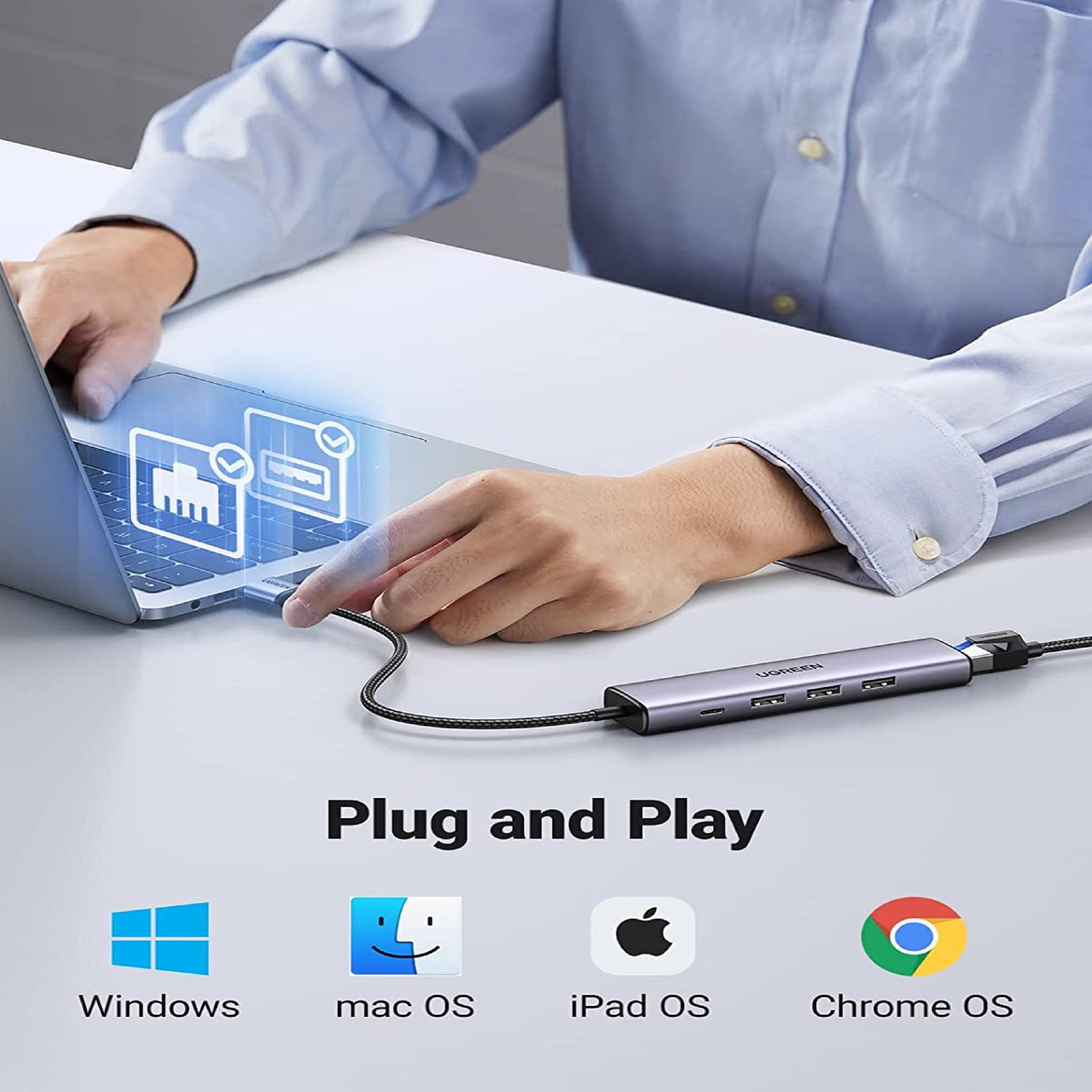 پورت وردوی : USB 3.0 A Male پورت های خروجی : RJ45 Gigabit Ethernet Port – USB 3.0 A × 3 – USB-C |