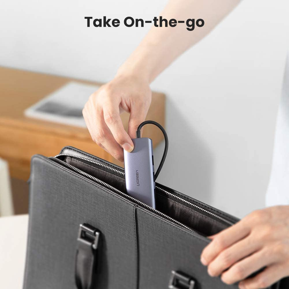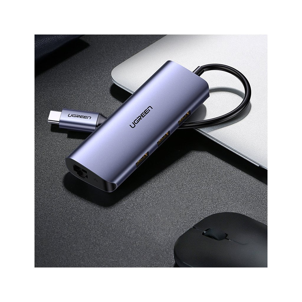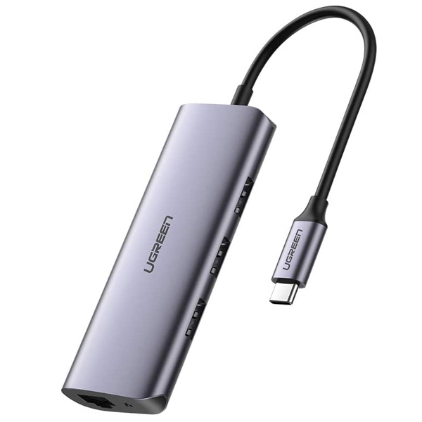 هاب 4 پورت یوگرین با بدنه آلومینیومی میباشد. این هاب دارای 4پورت مختلف جهت استفاده های گوناگون طراحی گردیده است و دارای یک TYPE-C جهت اتصال به دستگاه های مختلف است و باقی این پورت ها عبارت اند از: 3 پورت USB 3.0 که قابلیت انتقال اطلاعات تا سرعت 5Gpbs ، یک پورت شبکه RJ45 با سرعت 10/100/1000 جهت اتصال دستگاه شما به شبکه از طریق کابل میباشد. با توجه به طراحی امروزه لپتاپ ها جهت نازک تر شدن مجبور به حذف این پورت ها شده اند ولی این هاب تمام پورت های مورد نیاز شما را یک جا در خود جمع کرده است.