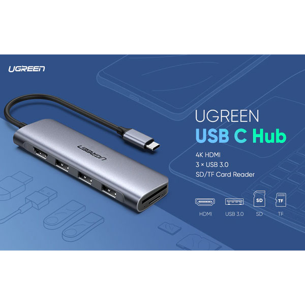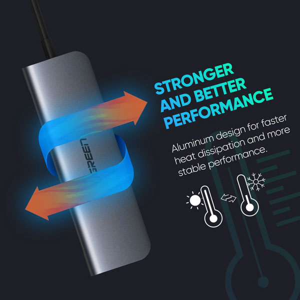 هاب USB-C با 6 پورت محصول UGREEN است . این محصول از USB ورژن USB3.0 با سرعت بالا پشتیبانی میکند . کاربر به راحتی میتواند ابزارهای جانبی مختلفی مانند کیبورد ، ماوس ، دوربین و حتی پرینتر خورد را متصل کند.