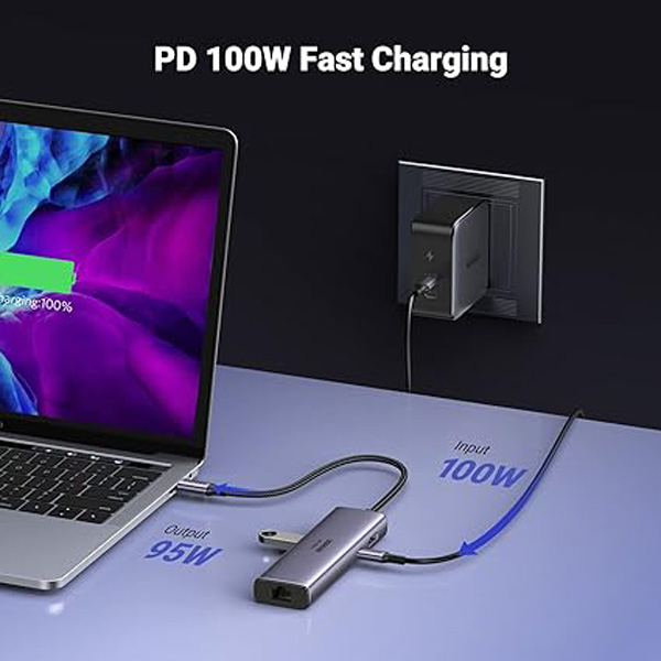 قابلیت شارژ تا 100W دارای درگاه USB-C PD درگاه SD و TF درگاه HDMI درگاه RJ45 2 پورت USB-A ورژن USB3.0 |