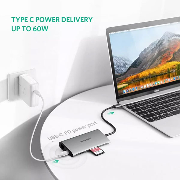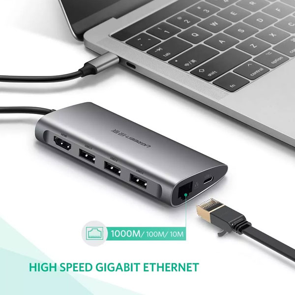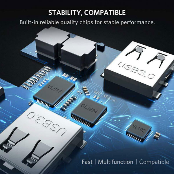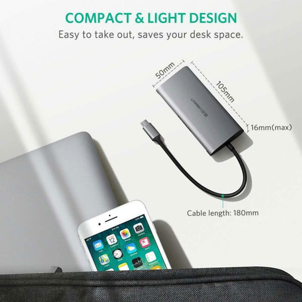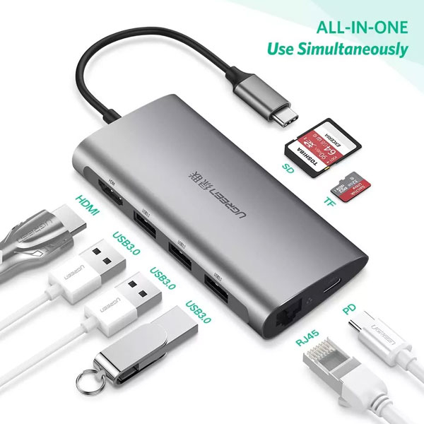 هاب USB-C با 8 پورت محصول UGREEN است . این محصول از USB ورژن USB3.0 با سرعت بالا پشتیبانی میکند . کاربر به راحتی میتواند ابزارهای جانبی مختلفی مانند کیبورد ، ماوس ، دوربین و حتی پرینتر خورد را متصل کند.