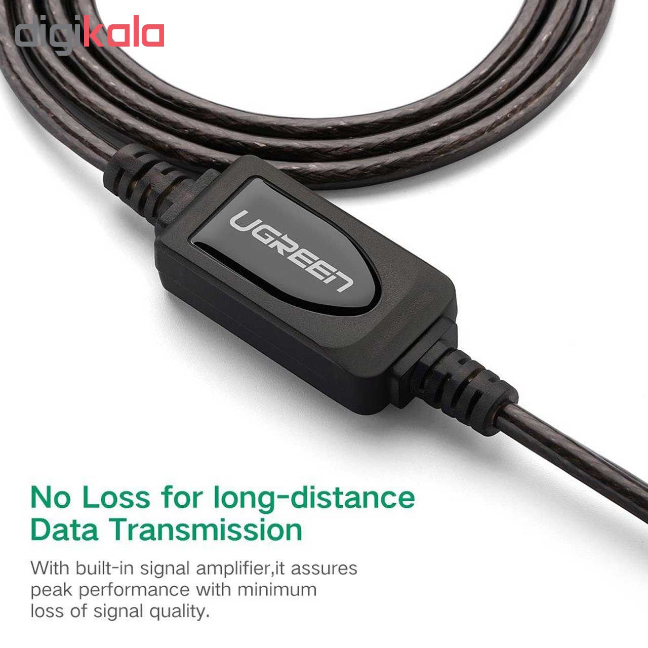 کابل تقویت USB2.0 برند Ugreen مدل US121 با طول 15 متر، ابزاری مناسب برای دسترسی به درگاه‌های USB شما خواهد بود. در یک سوی این کابل یک درگاه USB تعبیه شده و در سوی دیگر آن یک کانکتور USB قرار گرفته است. شما می‌توانید با استفاده از کابل تقویت USB2.0 برند Ugreen مدل US121 اطلاعات خود را با سرعت منتقل کنید. گاهی اوقات به خاطر محدودیت فضا یا تغییر دکوراسیون و چیدمان تجهیزات، دسترسی به درگاه‌های پشت کیس یا سایر دستگاه‌ ها دشوار می‌شود. گاهی هم نیاز است که در فاصله‌ای بیشتر از حد معمول از کامپیوترها، به درگاه USB دسترسی داشته باشیم. اینجاست که پای کابل‌های افزایش طول به میان می‌آید. این کابل‌ها دارای یک کانکتور نری و یک مادگی یکسان هستند. گفتنی است این کابل از نوع USB نسخه 2.0 است و سرعت انتقال اطلاعات در آن به 480 مگابایت بر ثانیه می‌رسد. یک برد تقویت کننده سیگنال در این محصول تعبیه شده تا انتقال سیگنال در طول 15 متر دچار افت کیفیت یا نویز نشود.