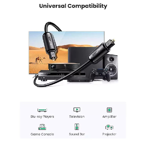 با کابل اپتیکال صدای یوگرین مدل Toslink به طول 2 متر، دیگر نگران کیفیت انتقال صدای دستگاه های صوتی خود نباشید. این کابل با استفاده از فناوری اپتیکال پیشرفته، انتقال صدای بی نقص و بدون افت را تضمین می کند. چه در حال گوش دادن به موسیقی با کیفیت فراگیر Dolby Atmos باشید یا در حال تماشای فیلم های سینمایی با صدای چند کاناله، این کابل اپتیکال صدا را با وضوح و غنای بی نظیری به گوش شما خواهد رساند. تجربه شنیداری خود را به سطح جدیدی ارتقا دهید با این کابل با کیفیت.کابل اپتیکال صدای یوگرین مدل Toslink به طول 2 متر، به شما امکان می دهد تا دستگاه های صوتی خود را به انواع سیستم های صوتی پیشرفته متصل کنید. این کابل با طول مناسب 2 متری، امکان اتصال دستگاه ها در فواصل دور را فراهم می کند. با این قابلیت، می توانید از تجهیزات صوتی خود در هر محیطی استفاده کنید و تجربه شنیداری خود را به سطح جدیدی ارتقا دهید.این کابل اپتیکال صدای یوگرین مدل Toslink به طول 2 متر، با طراحی مقاوم و انعطاف پذیر، انتخاب ایده آل برای استفاده روزانه است. با مقاومت در برابر خم شدن و طول مناسب، می توانید این کابل را به راحتی در محیط های مختلف مورد استفاده قرار دهید. تجربه شنیداری خود را با این کابل با کیفیت و قابل اعتماد ارتقا دهید.