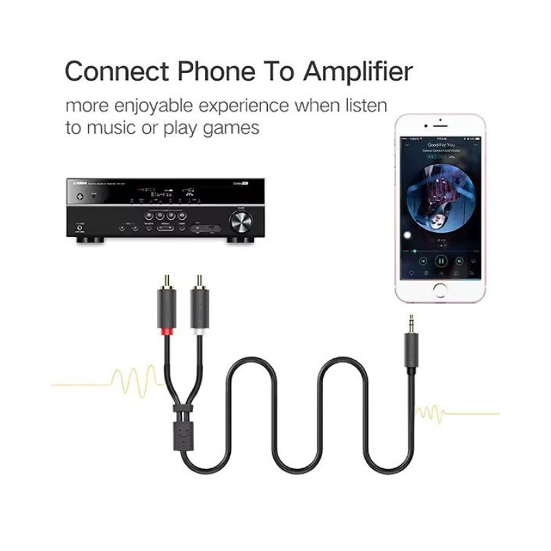 تبدیل 1 به 2 صدا استریو 3.5 میلی متر به RCA نر یوگرینUGREEN AV102 محصولی از برند «یوگرین» (UGREEN) است. این کابل، یک تبدیل جک 3.5 میلیمتری به RCA استریو است و یک کابل صدا محسوب میشود. این کابل برای اتصال گوشیهای موبایل و تبلتها به سیستم صوتی خانگی ارائه شدهاست. دقت داشته باشید که معمولا سیستمهای صوتی از ورودی RCA استریو برخوردار هستند و خروجی هدفون موبایلها و تبلتها تنها از جک 3.5 میلیمتری پشتیبانی میکند. با استفاده از کابل AV102 میتوان چنین امکانی را در اختیار داشت. طول این کابل 1 متر است و در ساخت آن از مس فاقد اکسیژن (OFC) استفاده شدهاست. در کانکتورها از یک لایه روکش طلا استفاده شده تا اتصال صوتی بهتری بین دستگاهها برقرار شود.