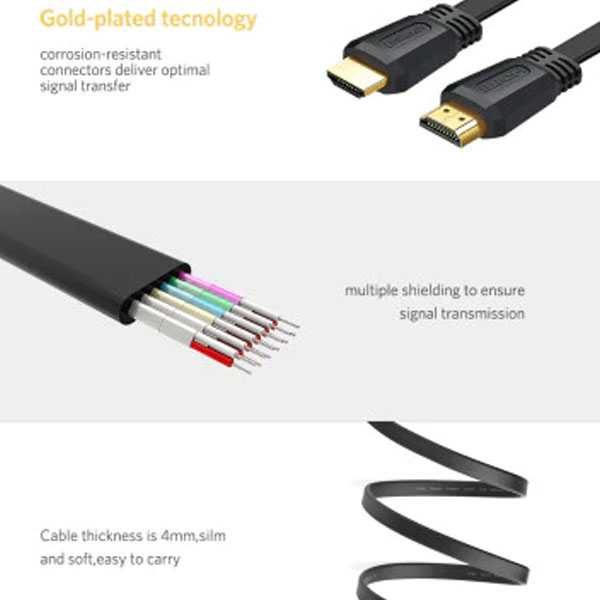 مدل «ED015-50819» از سری کابلهای شرکت «یوگرین»(Ugreen) کابلی مناسب برای انتقال تصاویر است . شما میتوانید از این کابل برای انتقال و بهاشتراکگذاشتن تصاویر میان دستگاههای مجهز به درگاه HDMI خود استفاده کنید. در هر سمت این کابل یک کانکتور HDMI قرار گرفته که با انواع دستگاههای دارای این درگاه سازگار است. این کابل 1.5 متر طول دارد و رشتههای سیمی داخل آن با روکشی از جنس پلاستیک پوشانده شدهاند. این کابل HDMI دارای کانکتورهایی با روکشی از جنس فلز طلاست؛ بنابراین میتوانید با خیالی آسوده از آن استفاده کنید و از بابت نویز نگرانی نداشته باشید. بنابراین، اگر قصد دارید تصاویر را میان دستگاههایی مانند رایانه، تلویزیون، پخشکنندهی DVD و دستگاههای مشابه به اشتراک گذاشته و خیالتان راحت باشد که کابل HDMIتان هیچ تأثیر سویی در کیفیت تصاویر ایجاد نمیکند. این مدل از اتصال اترنت نیز پشتیبانی می کند و از دیگر قابلیت های آن می توان به پشتیبانی 3D و رزولوشن 4K اشاره داشت.