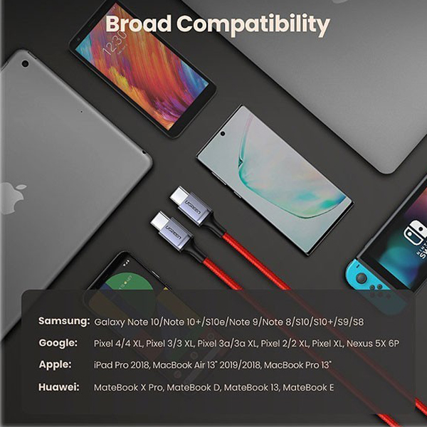 کابل Type C دو سر نر یوگرین مدل US294 طول 1 متر از اکثر پروتکل های شارژ سریع مانند USB Power Delivery، Qualcomm QC 4.0+/3.0 و Huawei FCP پشتیبانی می کند و 20V/3A (حداکثر 15V/3 A، 12V/3A، 9V) را ارائه می دهد. کابل USB C یوگرین مدل US294 از سرعت انتقال داده تا 480 مگابیت در ثانیه پشتیبانی می کند، فایل های 1 گیگابایتی در عرض 30 ثانیه منتقل می شوند. انتقال آسان و راحت فایل ها، فیلم ها، کلیپ های ویدئویی، عکس ها، فیلم ها از گوشی های هوشمند Type C به لپ تاپ یک انتخاب عالی برای بهبود راندمان کار و صرفه جویی در زمان می باشد. مقاومت کششی داخلی 56 اهم به طور خودکار ولتاژ و جریان خروجی کابل شارژ سریع USB C را مطابق با دستگاه شما تنظیم می کند و به جلوگیری از مشکلات اضافه جریان و اضافه ولتاژ کمک زیادی می کند. کابل داده شارژر USB Type C دارای یک ژاکت آلیاژ آلومینیومی قوی و یک ژاکت بافته شده نایلونی بدون گره خوردن برای افزایش انعطاف پذیری و دوام است.