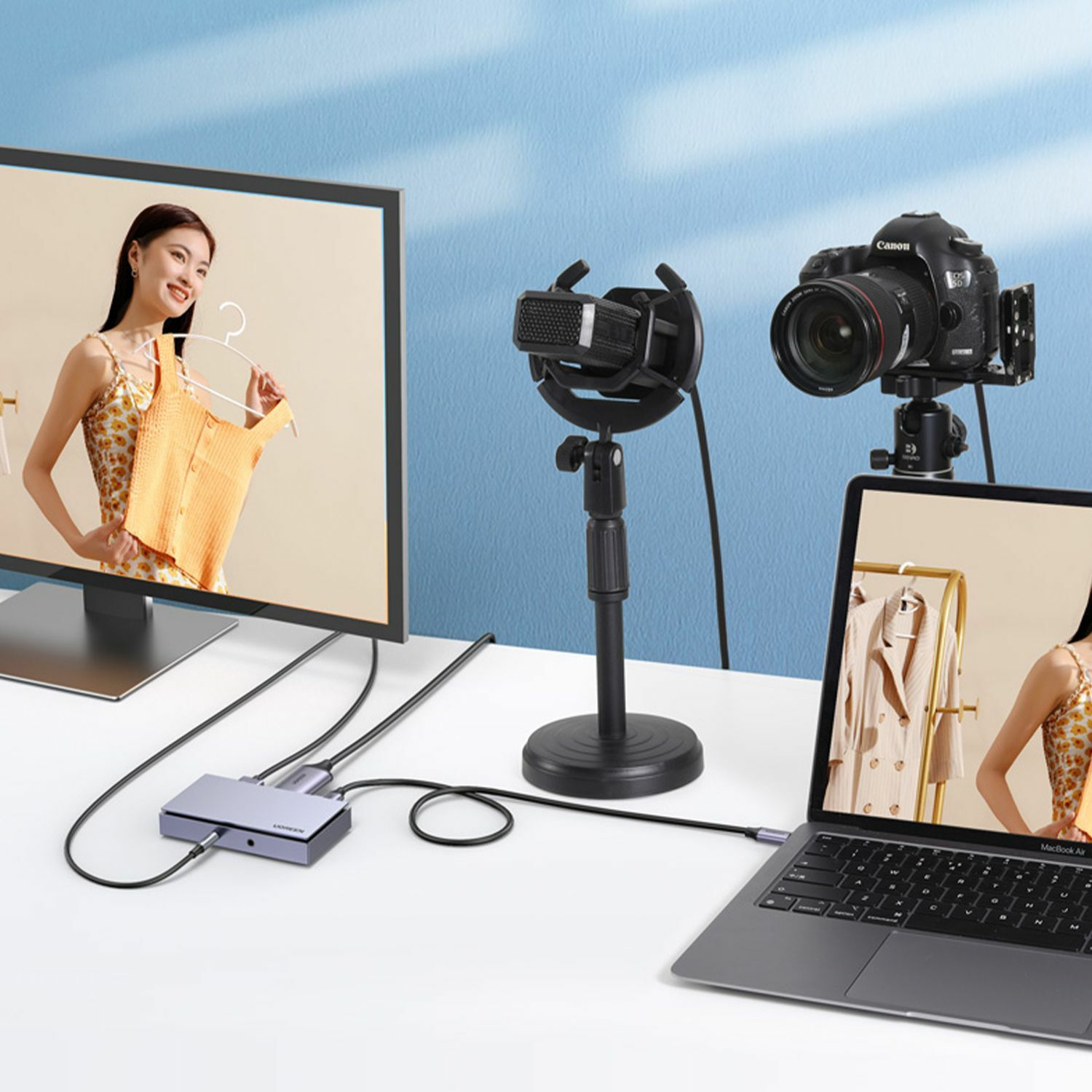 کارت کپچر یوگرین مدل CM410-10937 دستگاهی است که از ضبط و پخش تصاویر و ویدیوهای شما از دستگاه هایی مانند رایانه، کنسول های بازی، اندروید باکس، دی وی دی پلیر، ایکس باکس، از وضوح تصویر HDMI تا 4Kx2K@60Hz پشتیبانی می کند. این دستگاه همچنین قابلیت اتصال مستقیم به پلتفرم های Livestream مانند Youtube، را دارد، حتی می توانید در حین پخش زنده نظرات آنلاین اضافه کنید. این دستگاه دارای یک پورت USB Type-C است که از انتقال سریع داده ها از Capture به دستگاه های ذخیره سازی با سرعت 5 گیگابیت بر ثانیه پشتیبانی می کند.