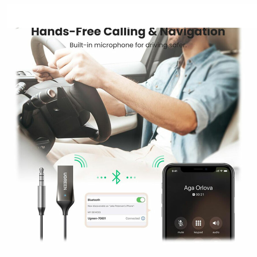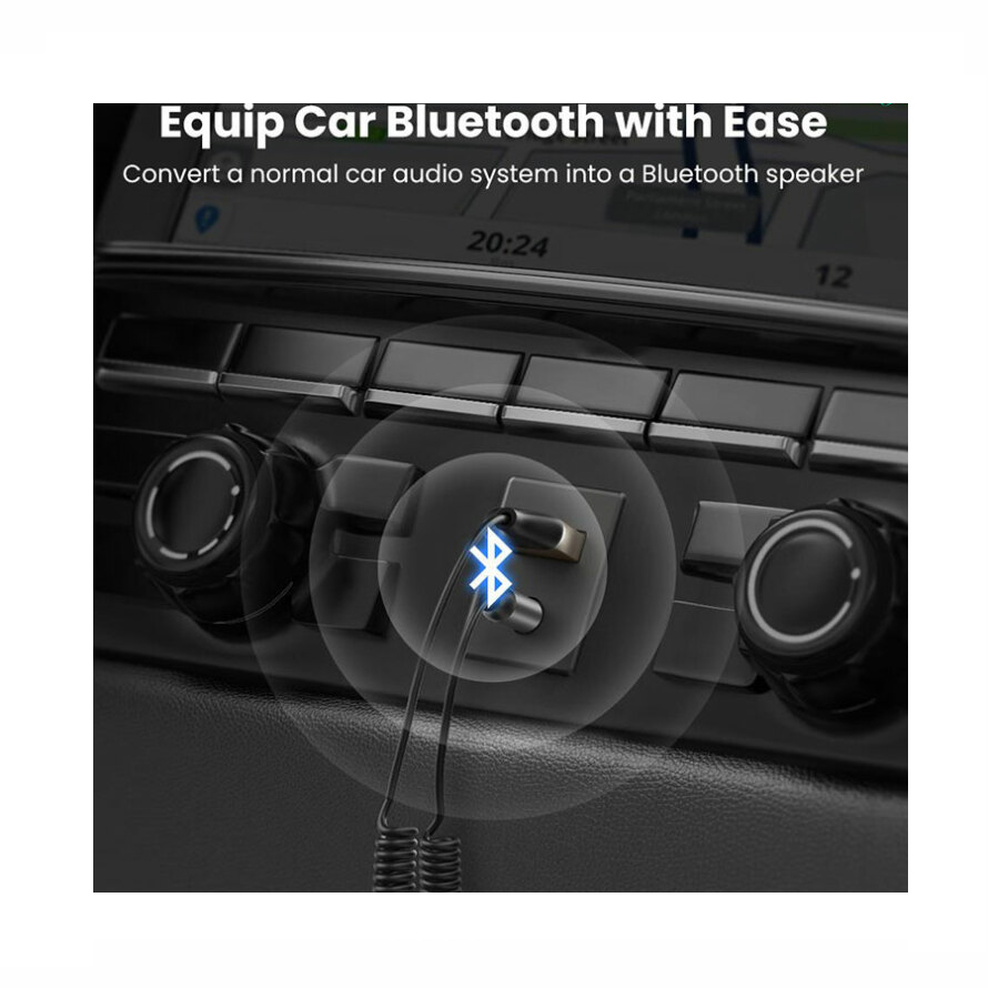 اگر تمایل دارید از روی تلفن همراه، تبلت و یا لپ تاپ خود بر روی ضبط خودرو آهنگ پخش نمایید ولی دستگاه ضبط شما مجهز به بلوتوث نمی باشد استفاده از دانگل بلوتوث خودرو راه حل مناسبی می باشد. این دستگاه با جک 3.5 میلی متری به ضبط خودرو و یا ورودی AUX سایر دستگاه های استریو وصل می شود و شما با فشار دادن دکمه پاور آن و پیدا کردن آن در گوشی موبایل اپل یا اندروید خود به صورت بلوتوثی با دستگاه جفت خواهید شد. سپس بدون حضور دست و پاگیر کابل ها می توانید آهنگ های مورد نظر خود را بر روی آن پخش نموده و یا مکالمات خود را انجام دهید. به همراه این گیرنده یک کابل شارژ میکرو یو اس بی وجود دارد تا خود دانگل را شارژ نمایید. پس از هر بار شارژ کامل می توانید حدود 8 ساعت موسیقی پخش کنید. شاخص ال ای دی روی گیرنده شما را از وضعیت شارژ و اتصال مطلع میسازد.